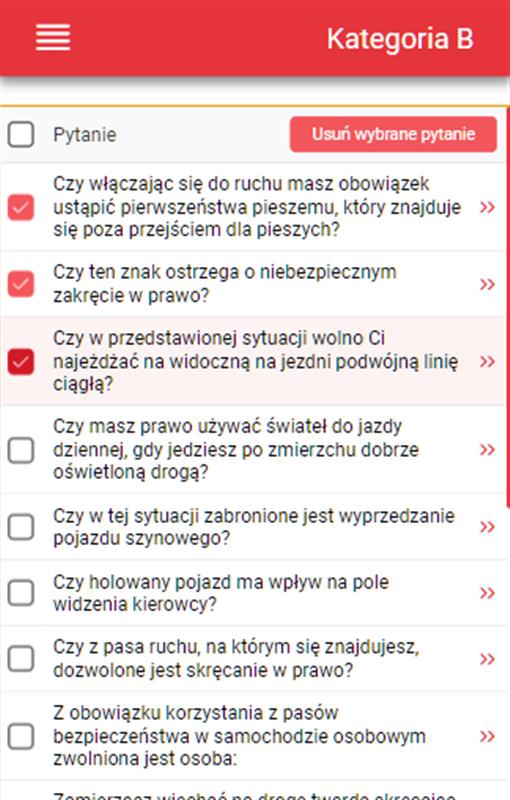 Same pytania egzaminacyjne są dostępne na stronie internetowej, lub wewnątrz aplikacji gdzie z łatwością możesz się ich nauczyć, ponieważ program monitoruje Twoje postępy.