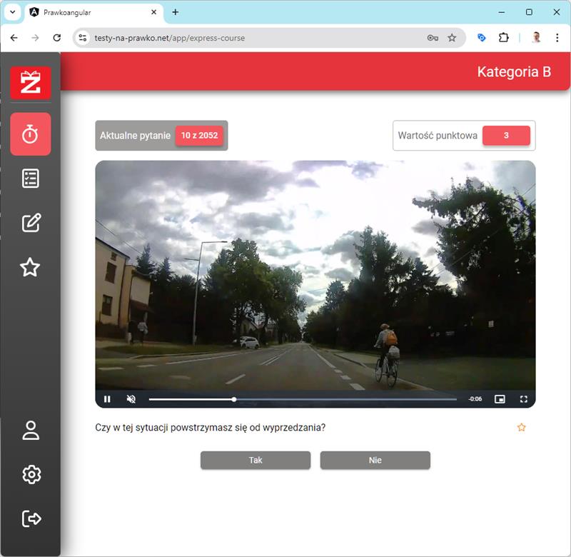 Nasza baza pytań obejmuje wszystkie kategorie prawa jazdy, dzięki czemu możesz przygotować się zarówno do egzaminu na kategorię B, jak i na inne kategorie, takie jak A czy C. Każda kategoria ma swoje specyficzne pytania, dlatego ważne jest, abyś skupił się na tych, które dotyczą Twojej kategorii.