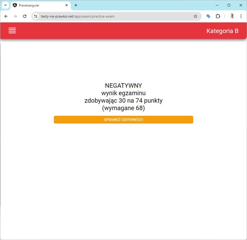 Jeśli otrzymasz taki wynik egzaminu, nie przejmuj się, to znak że trzeba jeszcze się pouczyć. Wykonaj kolejne etapy nauki za pomocą kursu ekspresowe, a gdy osiągniesz poziom dający wynik pozytywny w egzaminie wewnątrz naszej aplikacji symulujący egzamin w WORD, możesz umawiać egzamin państwowy w Twojej okolicy.