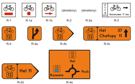 12) R-4e „tablica przed drogo wskazowa szlaku rowerowego”